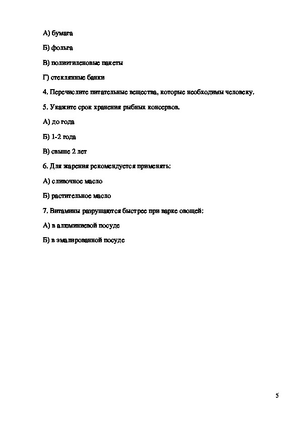4. Перечислите питательные вещества, которые необходимы человеку.