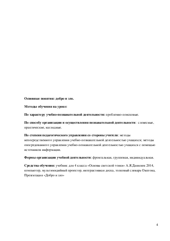 Средства обучения: учебник для 4 класса «Основы светской этики» А.Я.Данилюк 2014,