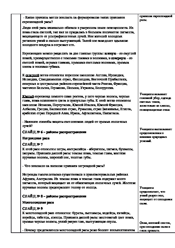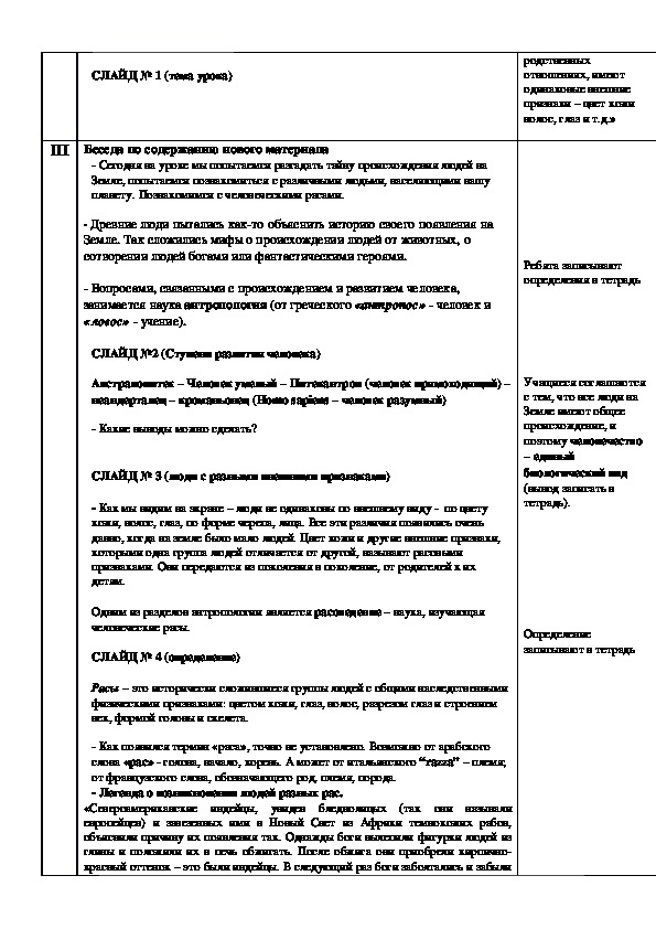 1) формирование у учащихся представления о равенстве всех человеческих рас и толерантности по отношению к их представителям.конспект