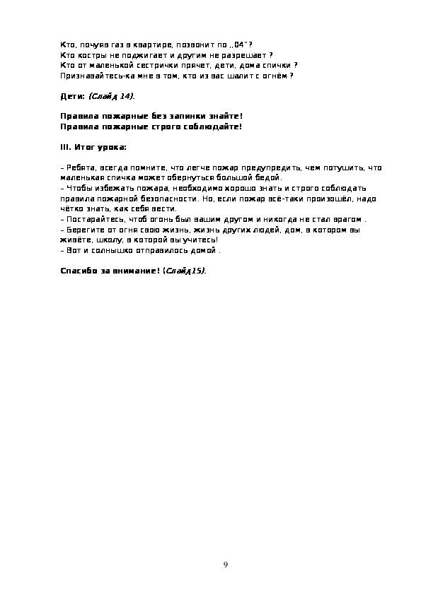 – Берегите от огня свою жизнь, жизнь других людей, дом, в котором вы