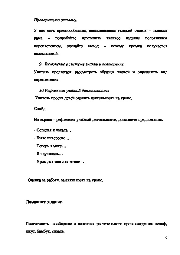 9. Включение в систему знаний и повторение.