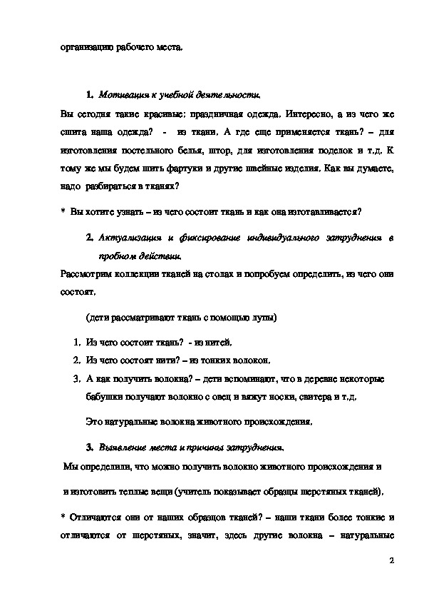 2. Актуализация и фиксирование индивидуального затруднения в