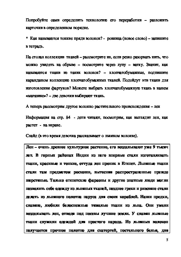 3. А как получить волокна? – дети вспоминают, что в деревне некоторые