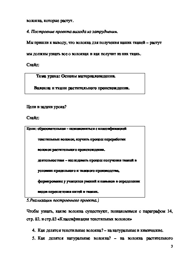Тема урока: «Основы материаловедения. Волокна и ткани растительного