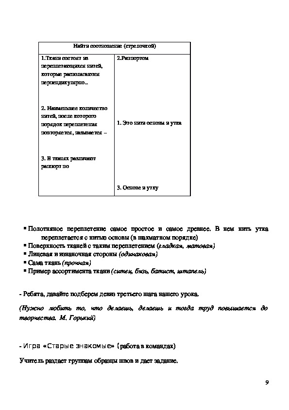 вспомнить виды ткацких переплетений и свойства тканей (положительного