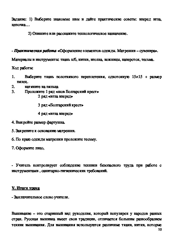 Тема: Основы технологии изготовления и обработки изделий вышивкой.