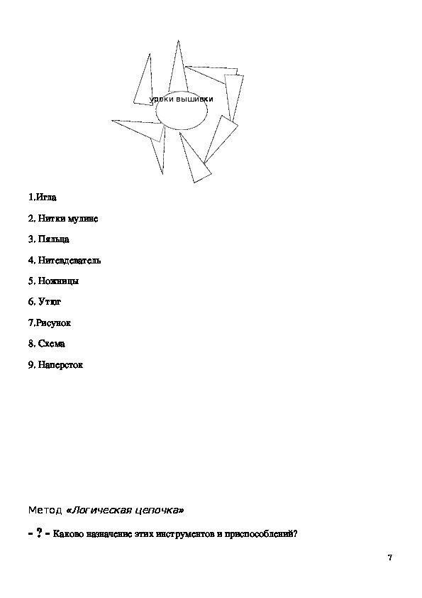7( пяльца для натяжения ткани при работе; тонкая, длинная игла для