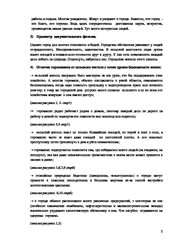 4) Отличие горожанина от сельского жителя с точки зрения безопасности жизни: