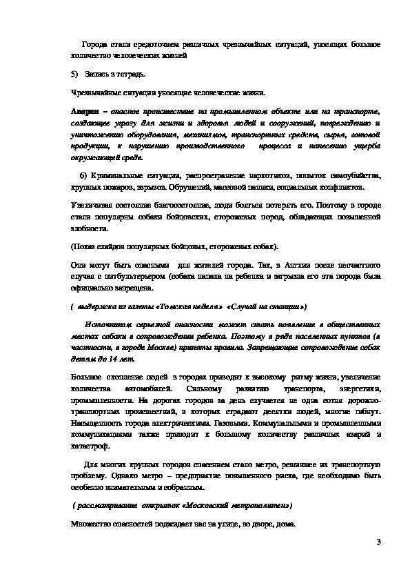 Тип урока: урок изучения нового материала.Конспект урока "Особенности города как среды обитания человека" 5 класс
