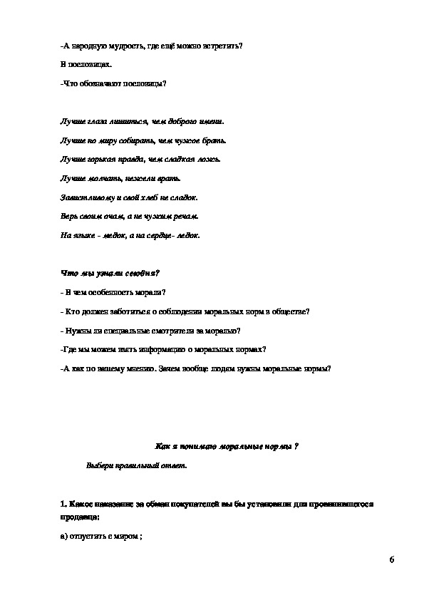 Цели: достичь понимания учащимися основных особенностей морали; воспитание в