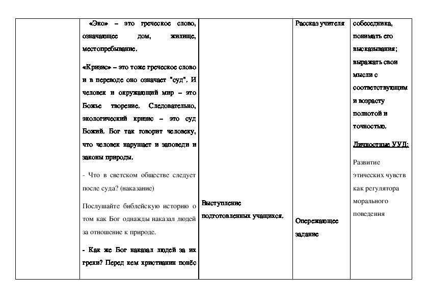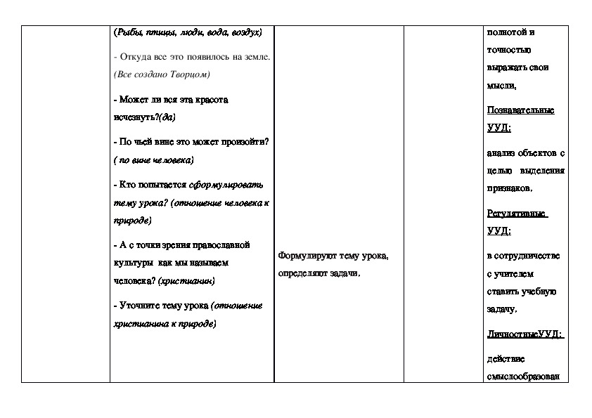 способствовать освоению христианского представления о сотворении мира, пониманию