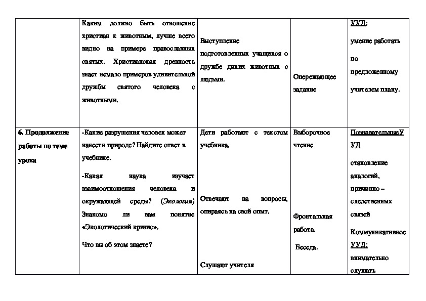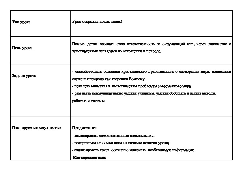 - способствовать освоению христианского представления о сотворении мира, пониманию служения природе как творению Божиему.