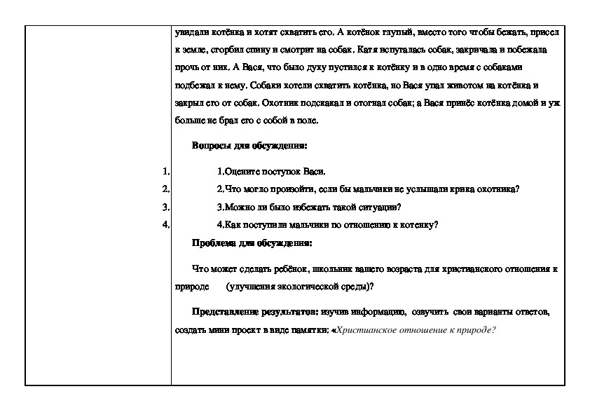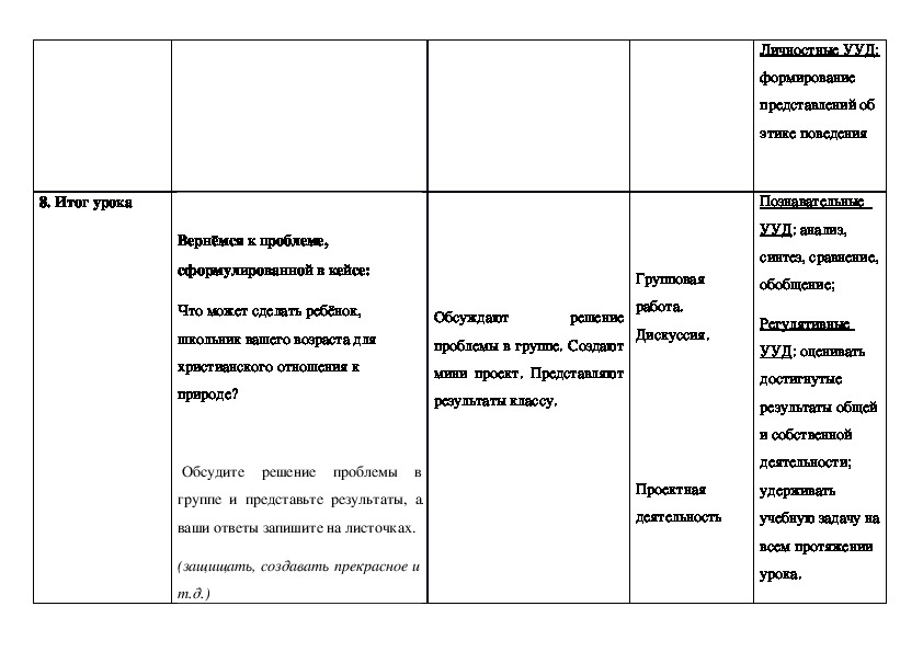 создать мини проект в виде памятки: «Христианское отношение к природе?Этап урока