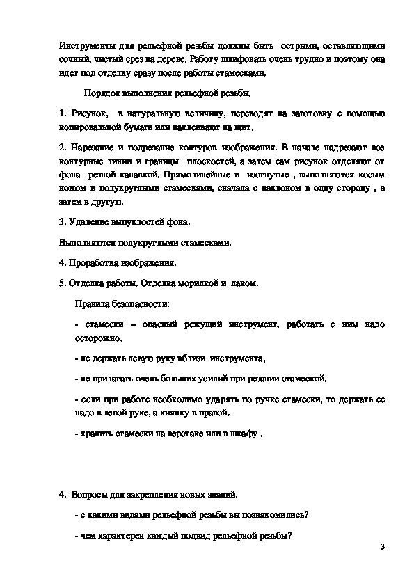 1. Образовательные: Ознакомить учащихся с рельефной резьбой и ее