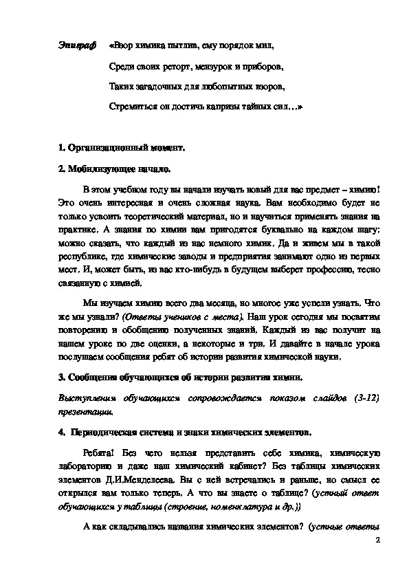 1Эпиграф «Взор химика пытлив, ему порядок мил,