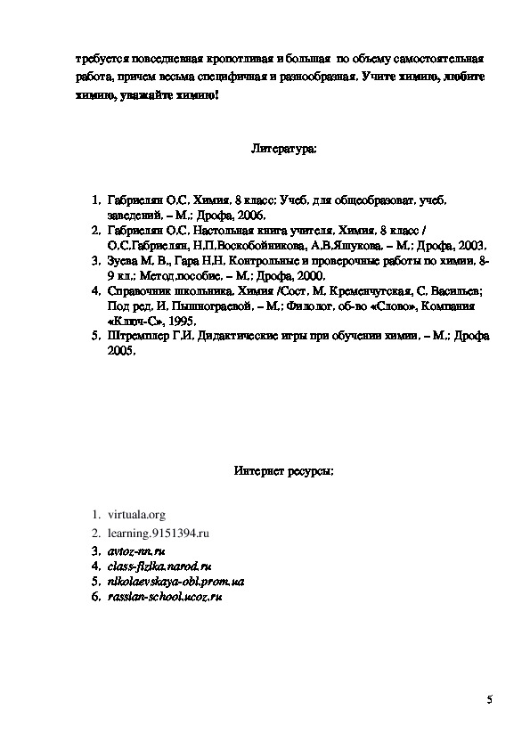 5. Штремплер Г.И. Дидактические игры при обучении химии. – М.: Дрофа