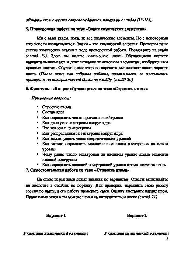 6. Фронтальный опрос обучающихся по теме «Строение атома»