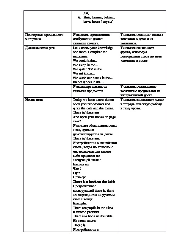конспект урока по английскому языку 3 класс на тему House и there is, there are. учащиеся повторяют пройденные слова по теме дом, комнаты в доме, предлоги, мебель и предметы. учащимся объясняется конструкция there is и there are. даются упражнения на закрепление