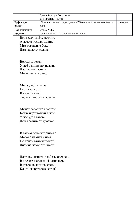 1. Знакомство с содержанием текста Г.Сейтназарова “ Наш аул”, активизировать ранее усвоенные слова и синтаксические конструкции , учить согласованию прилагательного с существительными.