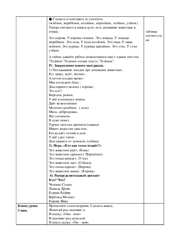 (ягнёнок, жеребёнок, козлёнок, поросёнок, телёнок, утёнок)