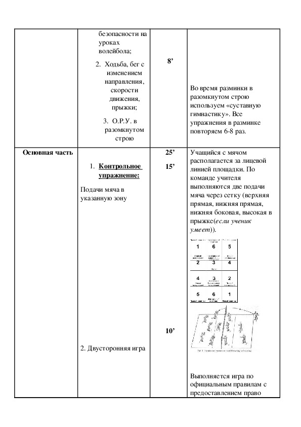 Задачи урока: 1) Контрольное упражнение: Подачи мяча в указанную зону;