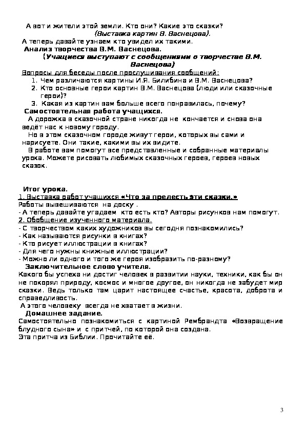 3. Выступление учащихся с сообщением о жизни и творчестве В.М.