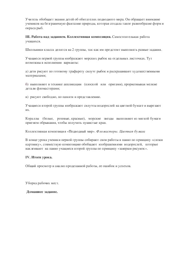 III. Работа над заданием. Коллективная композиция. Самостоятельная работа