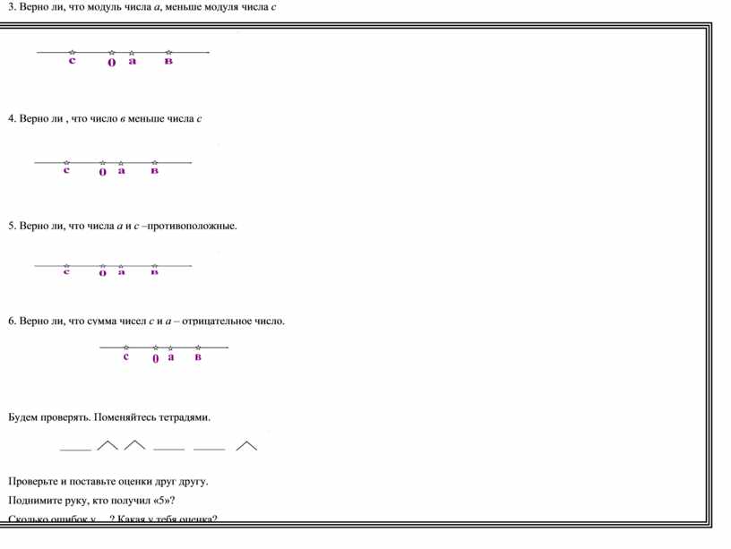 3. Верно ли, что модуль числа а, меньше модуля числа с