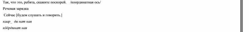 Координатная ось Поочередное чтение речевой зарядки