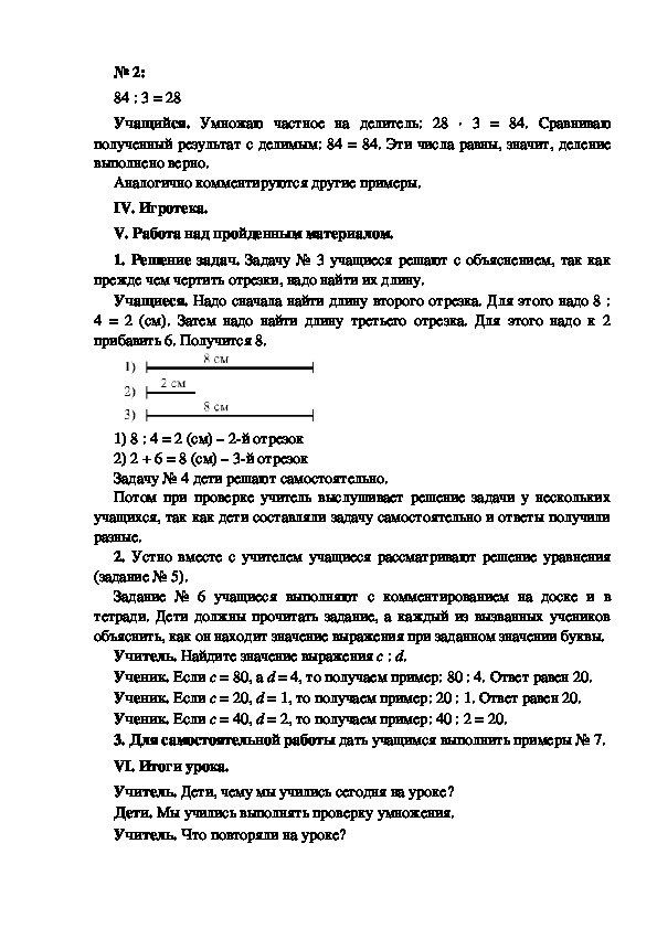 1) 8 : 4 = 2 (см) – 2й отрезок