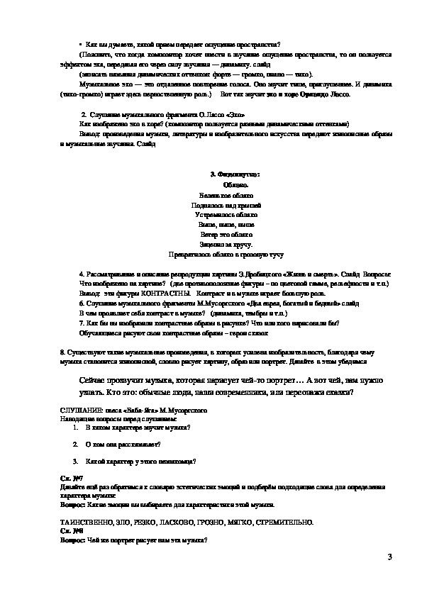 Музыкальный материал: О.Лассо «Эхо», И.Крутой «Музыкаэто дивная страна», М.Мусоргский
