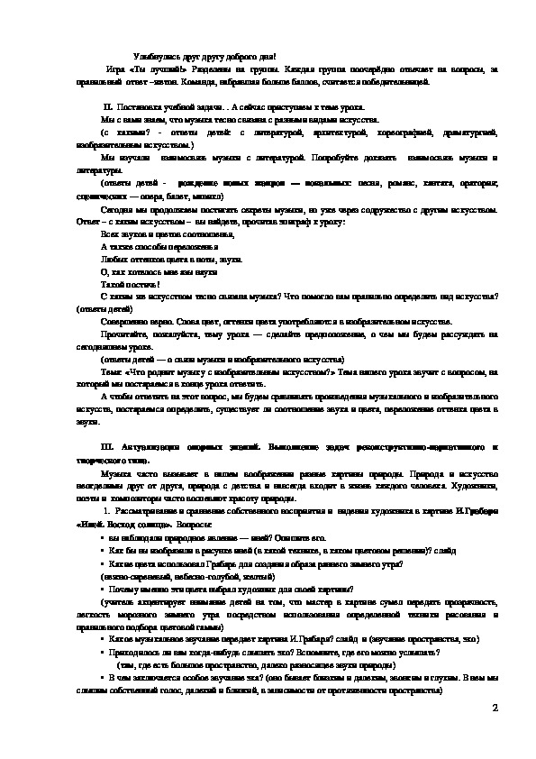 наблюдать в музыкальных произведениях примеры содружества, взаимодействия музыки и