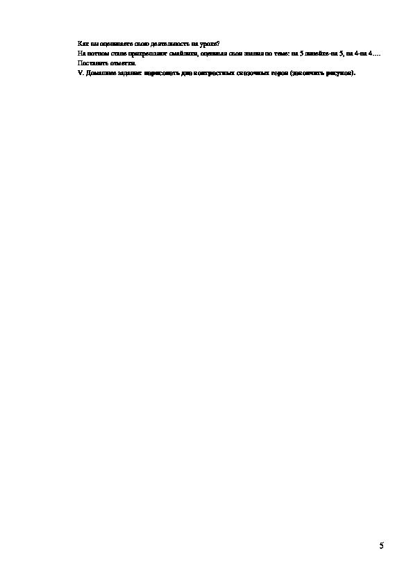 V. Домашнее задание: нарисовать два контрастных сказочных героя (закончить рисунок).