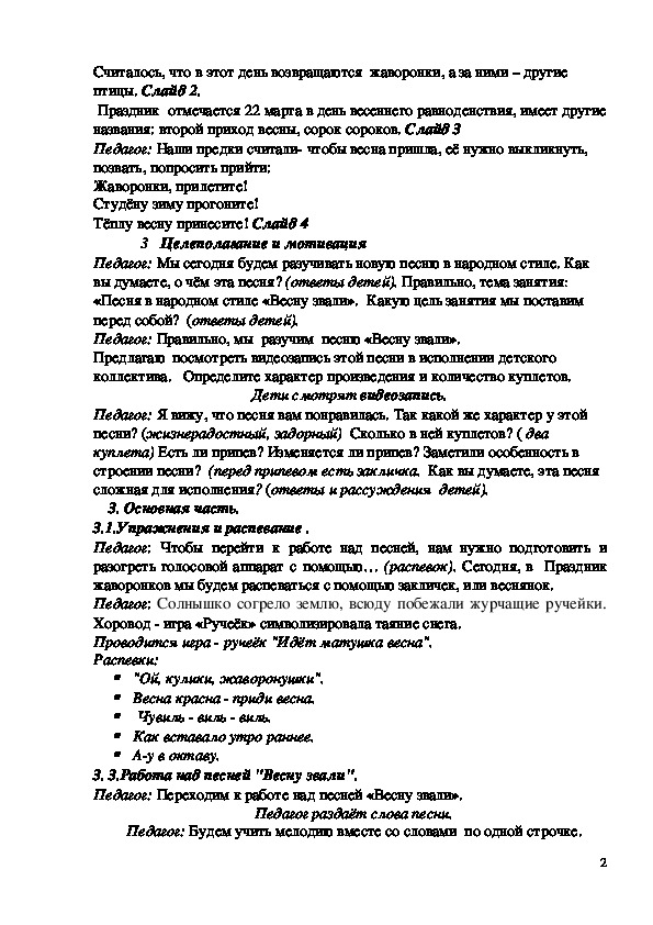 Педагог: Правильно, мы разучим песню «Весну звали».