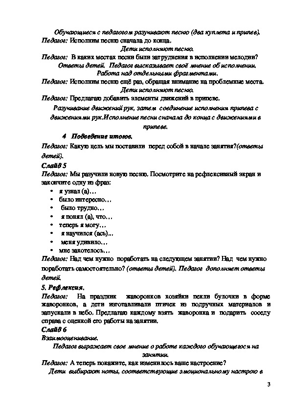 Педагог: Мы разучили новую песню. Посмотрите на рефлексивный экран и