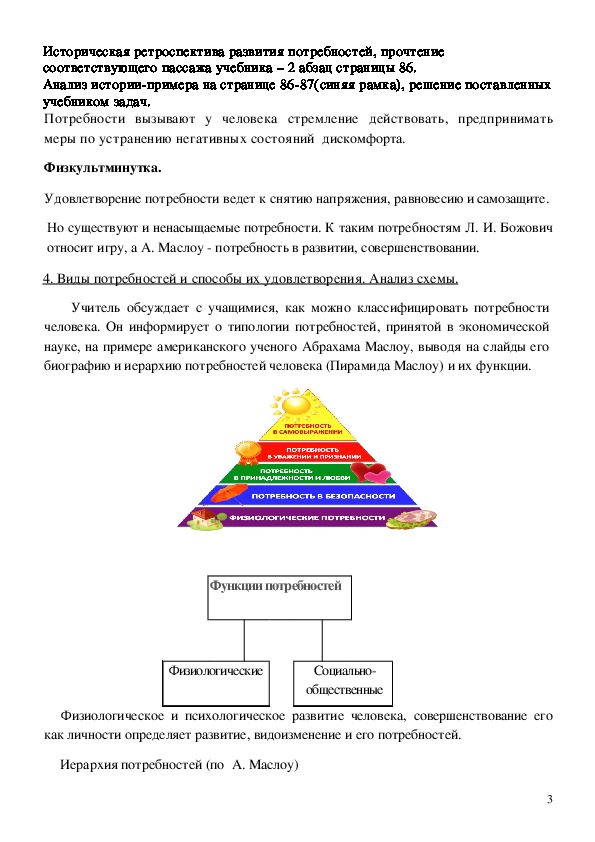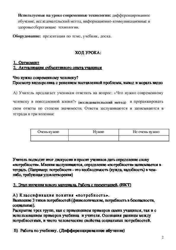 3. повторить иерархию потребностей Маслоу.Используемые на уроке современные технологии: дифференцированное