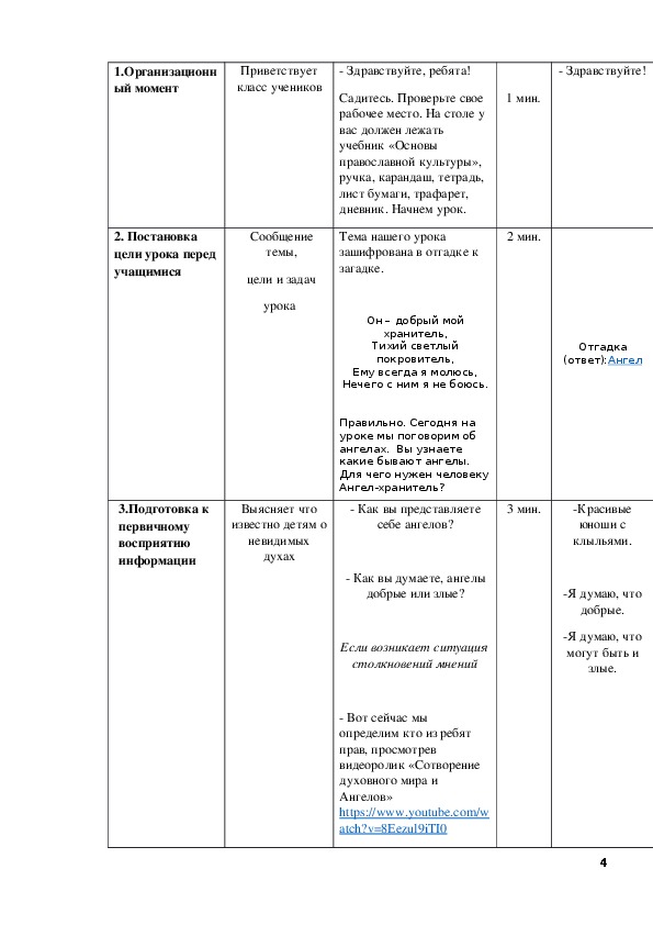 3. Воспитывающие: воспитывать христианскую веру в ангелов;