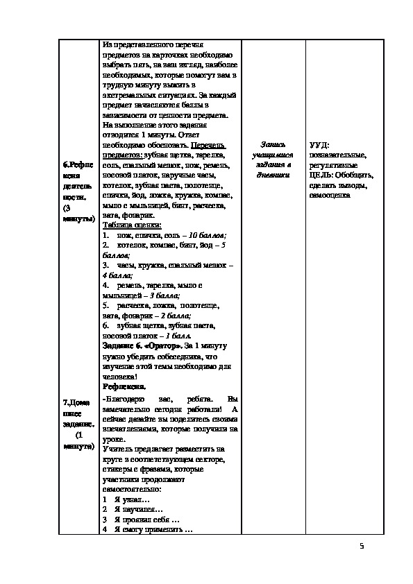 3. применять на практике правила безопасного поведения в условиях автономного существования;