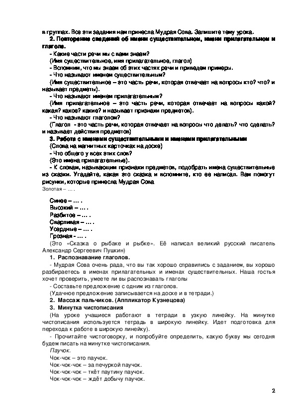 2. Повторение сведений об имени существительном, имени прилагательном и