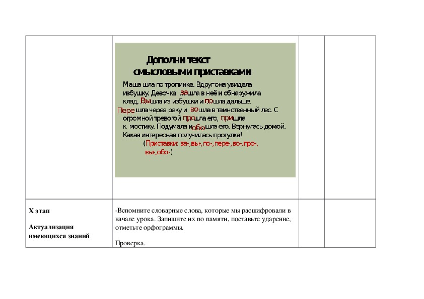 1. Познакомить с новой частью слова – приставкой, её ролью в слове. Научить выделять приставку из состава слова.