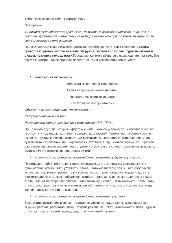 Разнообразное количество заданий позволяет выявить уровень знаний обучающихся по данной теме.Тема: Обобщение по теме «Орфография».