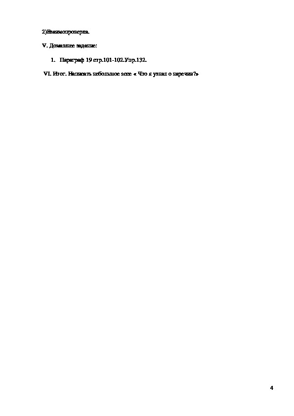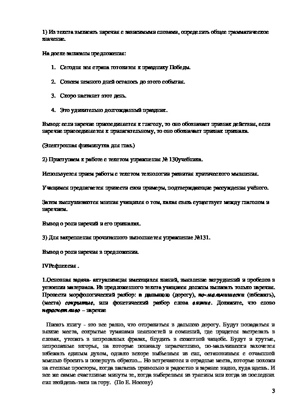 VI. Итог. Написать небольшое эссе « Что я узнал о наречии?»