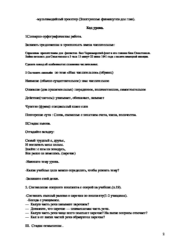 2 Составить синквейн по теме «Имя числительное».(образец)
