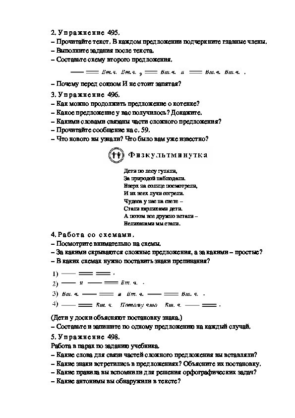 Цель: формировать умения отличать сложные предложения от предложений с однородными членами, соединять части сложного предложения запятой и союзами.