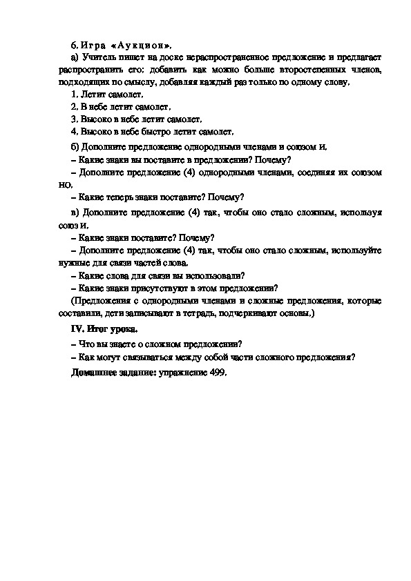 – Дополните предложение (4) так, чтобы оно стало сложным, используйте