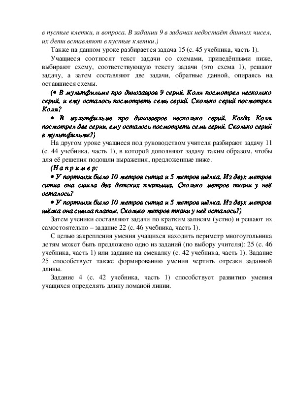 (с. 44 учебника, часть 1), в которой дополняют задачу таким образом, чтобы