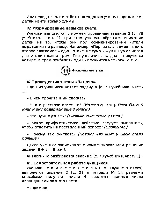 учебника, часть 1), при этом учитель обращает внимание