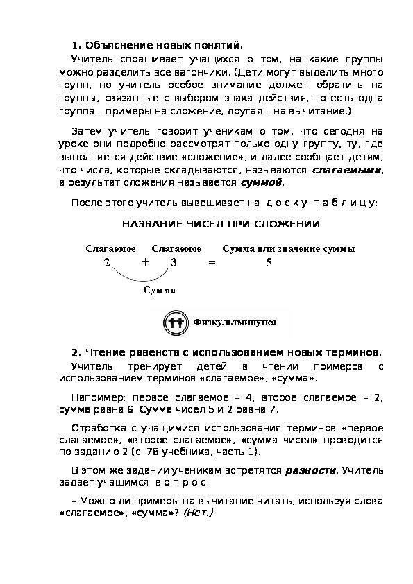 «слагаемое», «сумма»? (Нет.)Или перед началом работы по заданию учитель предлагает