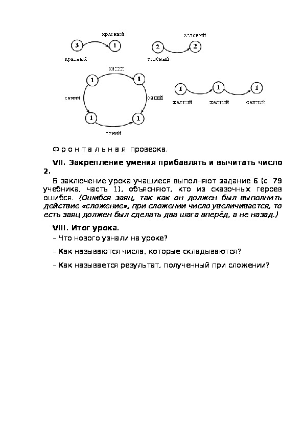 VII. Закрепление умения прибавлять и вычитать число