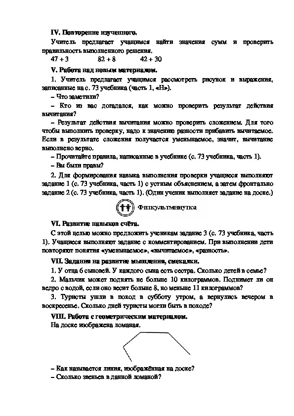 Цели: показать учащимся, что результат, найденный действием вычитания, можно проверить сложением; развивать вычислительные навыки, мышление учеников.